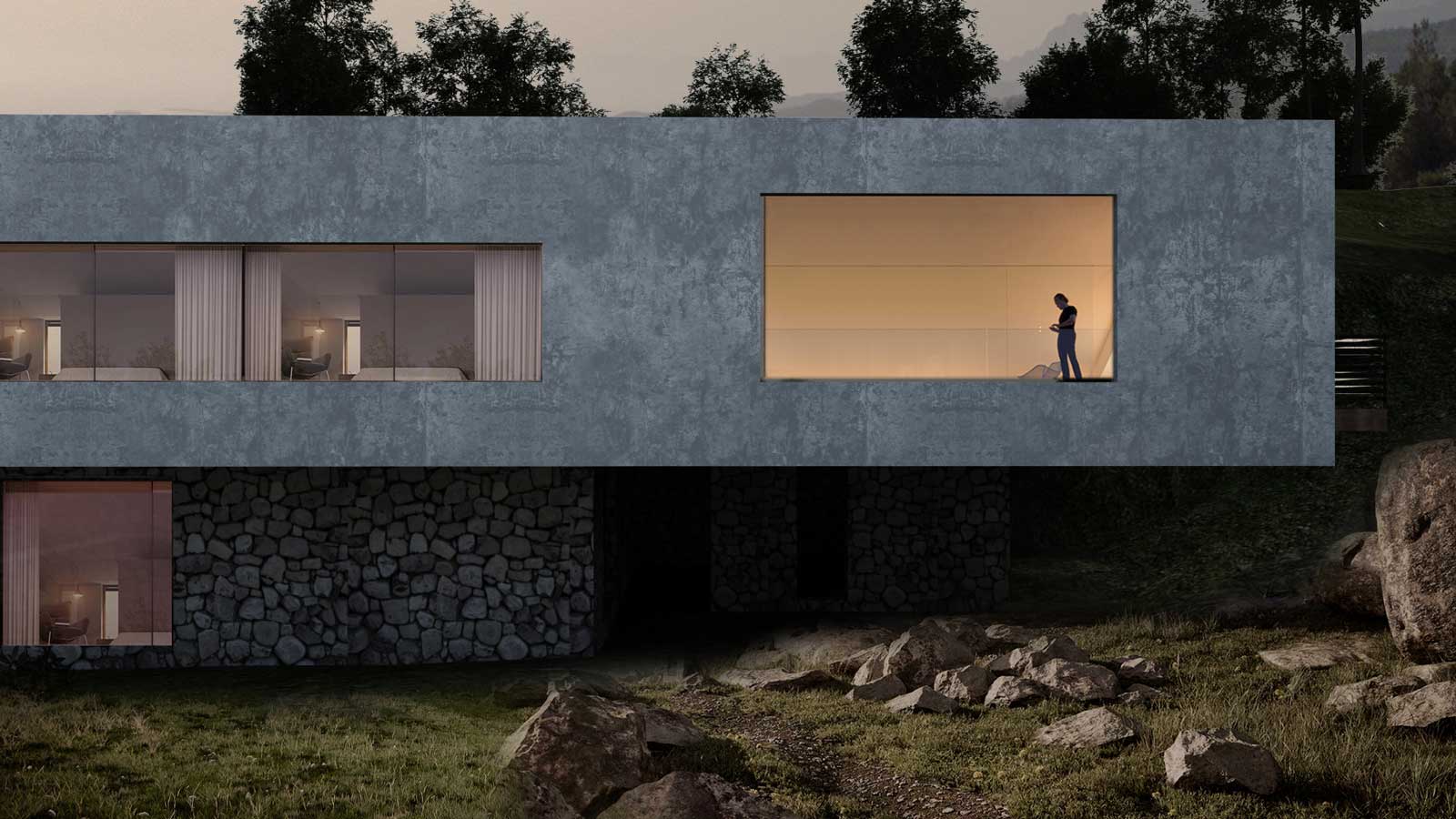 Breaking away from traditional, centralized architectural volumes, the Mountain House adopts a design focused on outward-looking enclosed patios and terraces. This approach prioritizes: