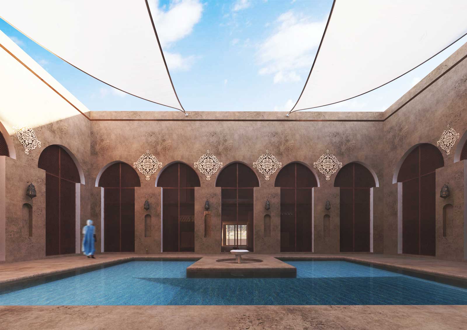 The design concept seeks to find a balance between modern comfort and the cultural needs of the residents. The design is centered around the concept of a central courtyard, an essential element in traditional Mauritanian architecture. This courtyard serves as a central hub for the interior spaces, providing natural ventilation and creating a sense of openness to the surrounding environment. Local materials such as stone and earth are used, reflecting the environmental character of the place and contributing to the climate response.